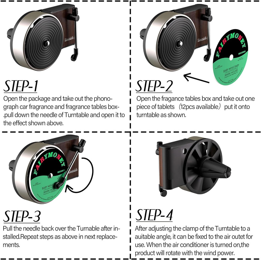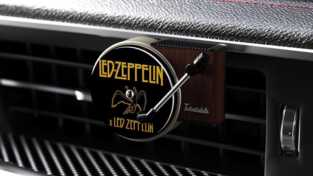 In addition to its swell retro record player design, the air freshener's freshening perfumes are injected into the records themselves, which you can swap out when they get old - or you're just sick of that smelly song - and which actually spin on the turntable in response to the vents' airflow.