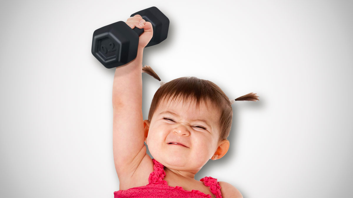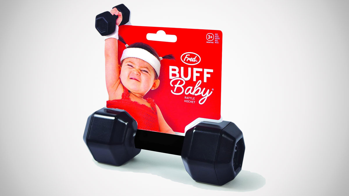 In a pickle because you skipped the birth of your first child to compete in the 2025 CrossFit Games? Make it up to your wife, and prepare your bundle of joy for the road of high intensity interval training that lies ahead with this Buff Baby Dumbbell rattle. 5.5" long x 2" wide, and phthalate- and BPA-free since there is a 100% chance your kid is going to bicep curl it straight to its mouth. The best part is that once Junior is old enough to walk and understand basic commands, you can let him use the rattle to work out with you, taking the opportunity to teach him the importance of physical activity, and promising that if he uses proper form and doesn't skimp on his reps, your DemonBells won't sneak into his room and eat his intestines while he sleeps.
