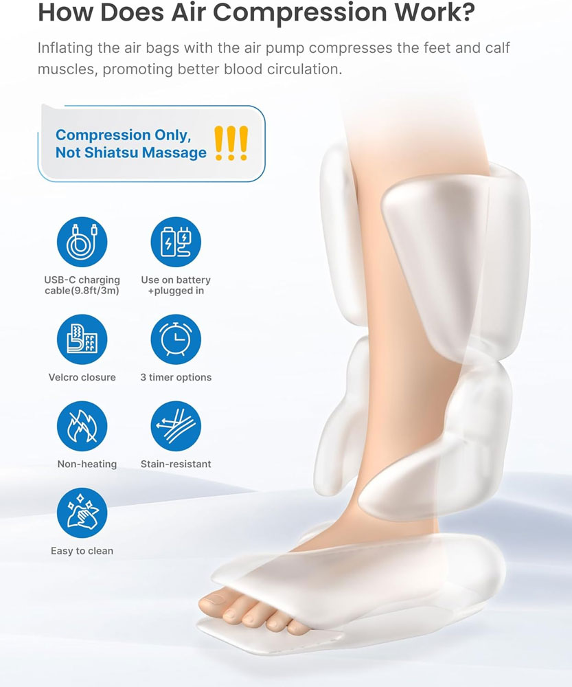 Skinny jeans, dress shoes, and toddlers with separation anxiety don't squeeze your calves and feet enough? Check out these wearable air compression leg massagers. They look like a pair of walking boots the doctor would prescribe for a stress fracture, but maker RENPHO says just a few minutes of wearing these boots - seated or even reclining in your Yaasa bed - will provide just enough pressure to relax tired legs, and relieve tension, soreness, and swelling.