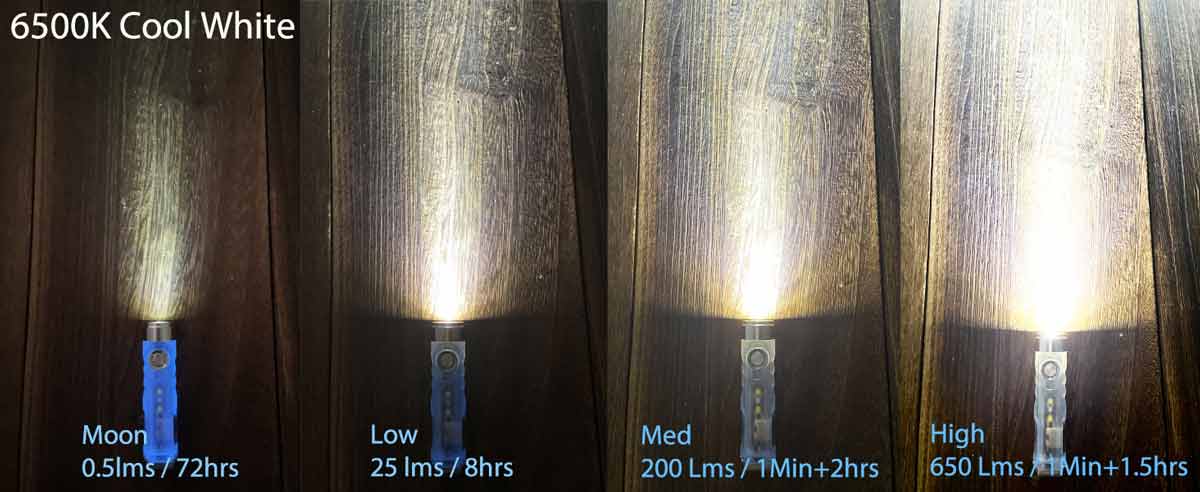 RovyVon makes a range of small, EDC-style torches. The Aurora is one of the brightest, with its cool white front emitter shining 650 lumens ahead in High Mode. There are also plenty of brightness gradations in between, starting with a 0.5-lumen Moonlight Mode. The flashlight also has warm white and 365nm sidelights, for uses such as reading and authenticating currency.