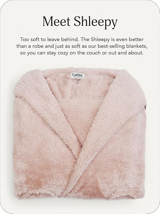 UnHide, you had me at "Shleepy." The perfect mush-mouth word not only for a faux fur wearable blanket, but to describe my general state of being, and what I say I am before telling my wife I want to shnuggle.